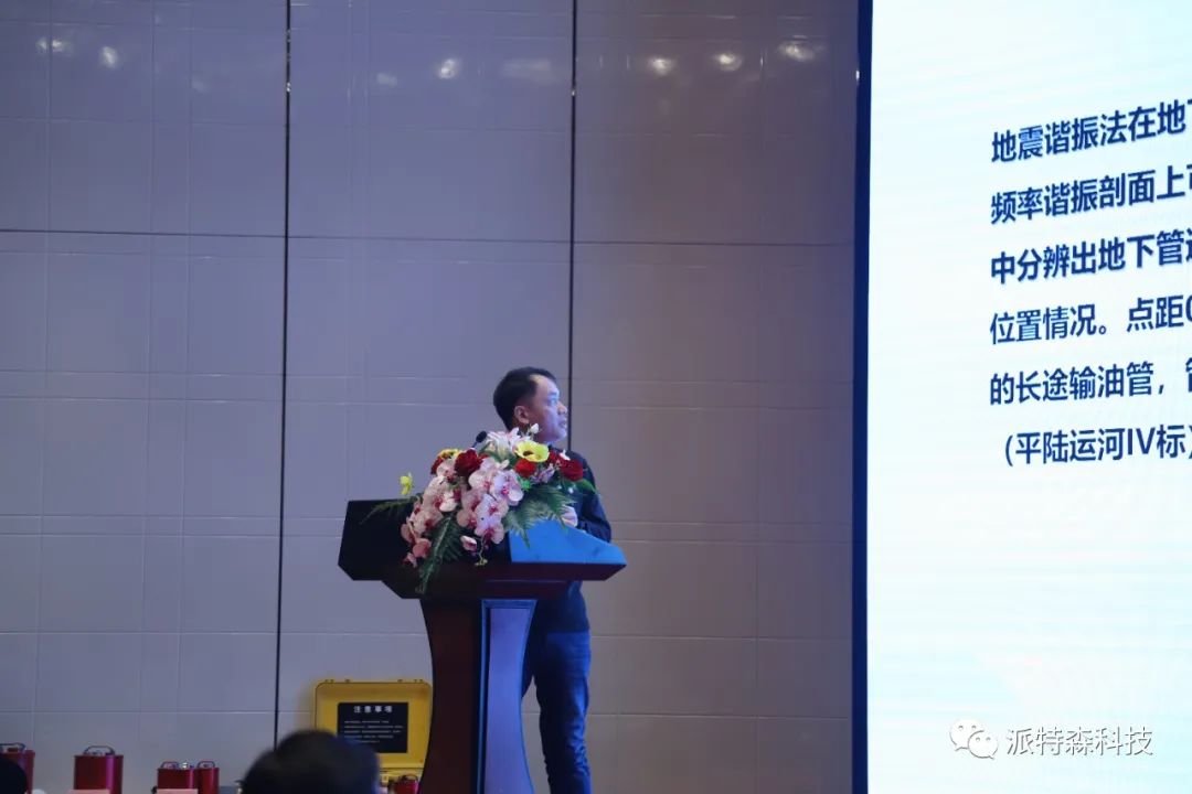 薛愛民博士作為公司創始人和董事長,在會議上致辭,他簡要回顧了派特森科技成立20年來的發展歷程,并向來賓介紹了地震頻率諧振技術的研發過程和應用成果,并展示了公司未來的發展遠景以及該技術在海外市場的應用前景。