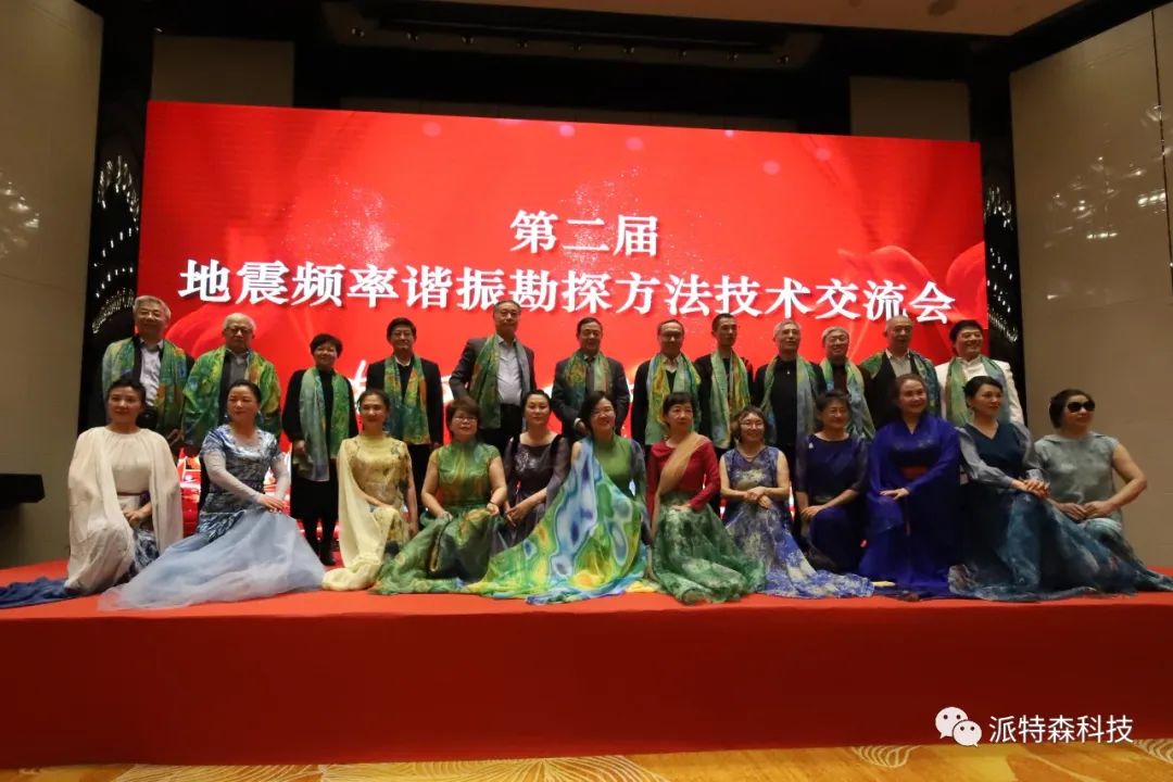 會后,一支由原長春地質學院文工團成員和畢業生組成的特色演出隊——“地礦之韻”為參會嘉賓呈現了一場簡短而極具特色的文藝節目。一幅幅被設計師印制在演出服和紗巾上的地震頻率諧振波阻抗成果圖在優美的舞姿下,繽紛多彩的展現在到場嘉賓面前,美不勝收。